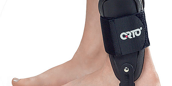 Шарнирный ортез на голеностопный сустав с амортизирующими накладками на голень. Основа разъемная, состоит из двух частей, соединённых с ложементом стопы. Шарниры одноосные и расположены в проекции голеностопного сустава. Фиксация ортеза на ноге осуществляется за счёт широкого ремня с застежкой «Велкро». Накладки и ремень съемные. Основной материал ортеза – пластик, накладок – EVA (этиленвинилацетат).