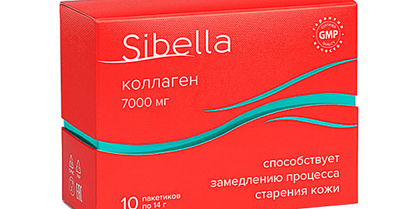 Коллаген порционный Сибелла в пакетиках по 14г. 10шт.ОписаниеКоллаген – это один из самых распространенных белков в нашем организме, он входит в состав костей, суставов, хрящей, кожи, ногтей. Коллаген 1 и 3 типа содержится в коже, костях, сухожилиях, стенках сосудов и роговице глаза, именно поэтому препараты, содержащие коллаген этих типов, уменьшают морщины на коже, оказывают положительное влияние на синтез дермального матрикса и являются эффективным средством в борьбе с возрастными изменениями кожи. Коллаген – волокна создают внеклеточный матрикс, который удерживает клетки вместе, поддерживает тонус кожи, делает соединительную ткань прочной и эластичной одновременно. Метилсульфонилметан – это источник серы природного происхождения в биологически доступной форме. Сера является составной частью протеинов большинства тканей организма, кровеносных сосудов, волос, ногтей, кожи и соединительных тканей, главным из которых является фибриллярный гликопротеиноидный белок – коллаген. Дигидрокверцетин нормализует проницаемость сосудистой стенки, восстанавливает микроциркуляцию, капиллярный кровоток и снабжение клеток кислородом и питательными веществами.Экстракт шлемника участвует в процессе регенерации клеток, активизирует обменные процессы и мозговое кровообращение. Экстракт лимона предохраняет организм от потери кальция. Комплекс витаминов С, В1 и В2 улучшает структуру волос и ногтей, укрепляет их, способствует обновлению клеток кожи.Функции коллагенаЯвляется основой соединительной
