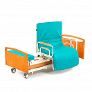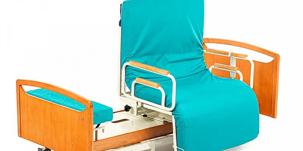 Медицинская кровать с электрическим приводом и поворотным креслом удобна как для пациента, так и для человека, ухаживающего за ним.