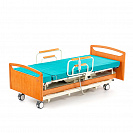 Большим плюсом и главной особенностью данной кровати является возможность выхода пациента вбок. В положении кресла ложе поворачивается перпендикулярно основанию, далее можно регулировать кресло таким образом, чтобы оно, поднимая спинную секцию и опуская икроножную секцию, помогало пациенту встать с кровати.