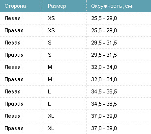 Размер голеностопного ортеза выбирают соответственно длине окружности, проходящей через пятку, лодыжки и подъем стопы.